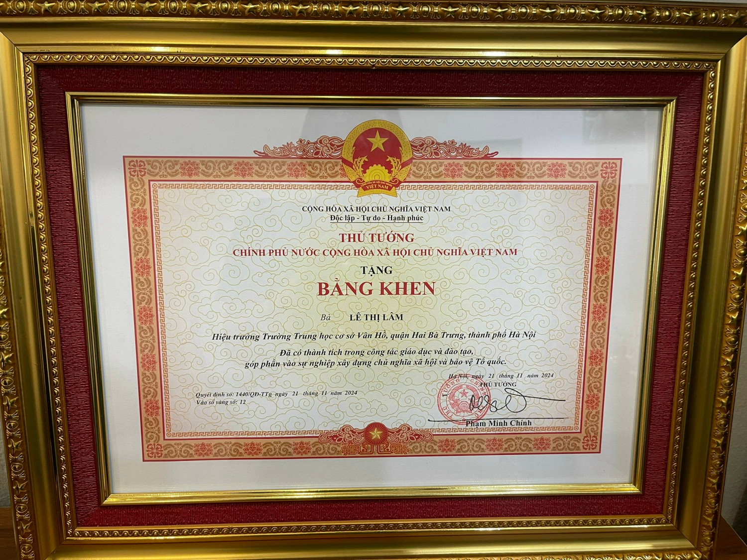 nhiệm vụ" 5 năm liền (2020 - 2024); Chứng nhận Đơn vị đạt chuẩn văn hóa